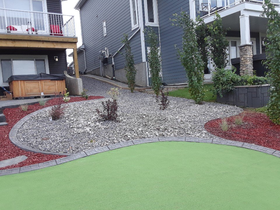 Purpose-built landscapes including final grading, paving stones, retaining walls, and structural outdoor features designed to perform in Edmonton’s climate.